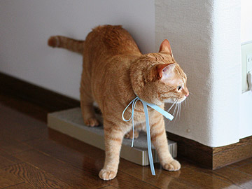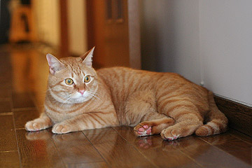 今年で2歳になるはみちゃんは、落ち着いた物腰のにゃんぎーとは対照的に、とにかく元気いっぱいでじっとしていない。ずっと家の中をぐるぐる歩き回っていて、なかなか立ち止まらない。写真を撮ってもほとんどブレてしまう。^^;