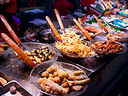 ![]() 揚げ物屋さんの店先。どれも揚げたてです。 |