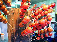 ![]() これは蜜銭という。イチゴとかキンカンとかの果物に、蜜がけしてある。日本の縁日でもりんごあめってあるね。 |