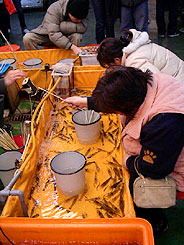 ![]() これは金魚すくいならぬ「エビすくい」。すくったエビを家に持って帰って飼うのかと思いきや、 |