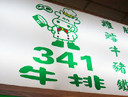![]() これはステーキ屋さんの看板。牛がステーキ焼いてるぞー。 |